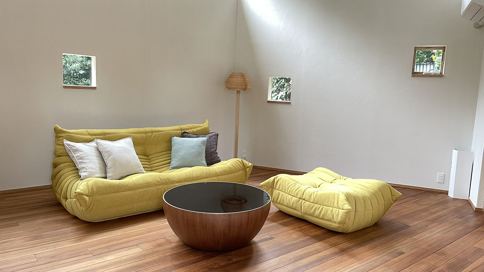 デザイナーズ家具そしてスタンド照明のシンプルな空間。自然を感じながらゆったりとした時間をお楽しみいただけます。